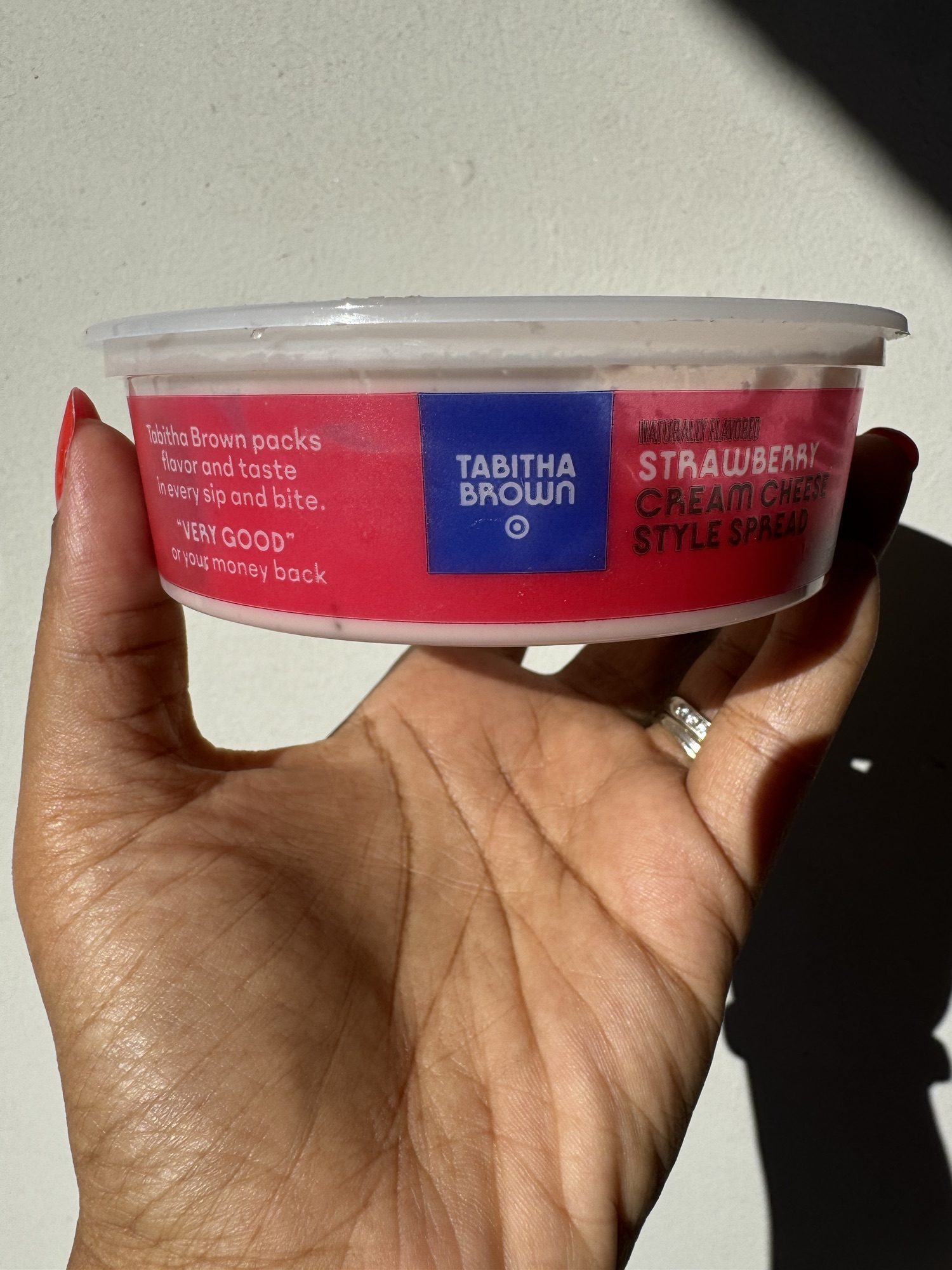 You can grab Tabitha Brown’s vegan cream cheese, including both the strawberry and carmelized onion flavors, exclusively at Target.