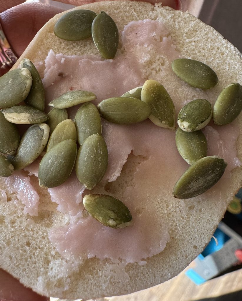 I love it on bagels and will sprinkle on some seeds (hemp, pumpkin, sunflower) for a little bit of healthy fats: